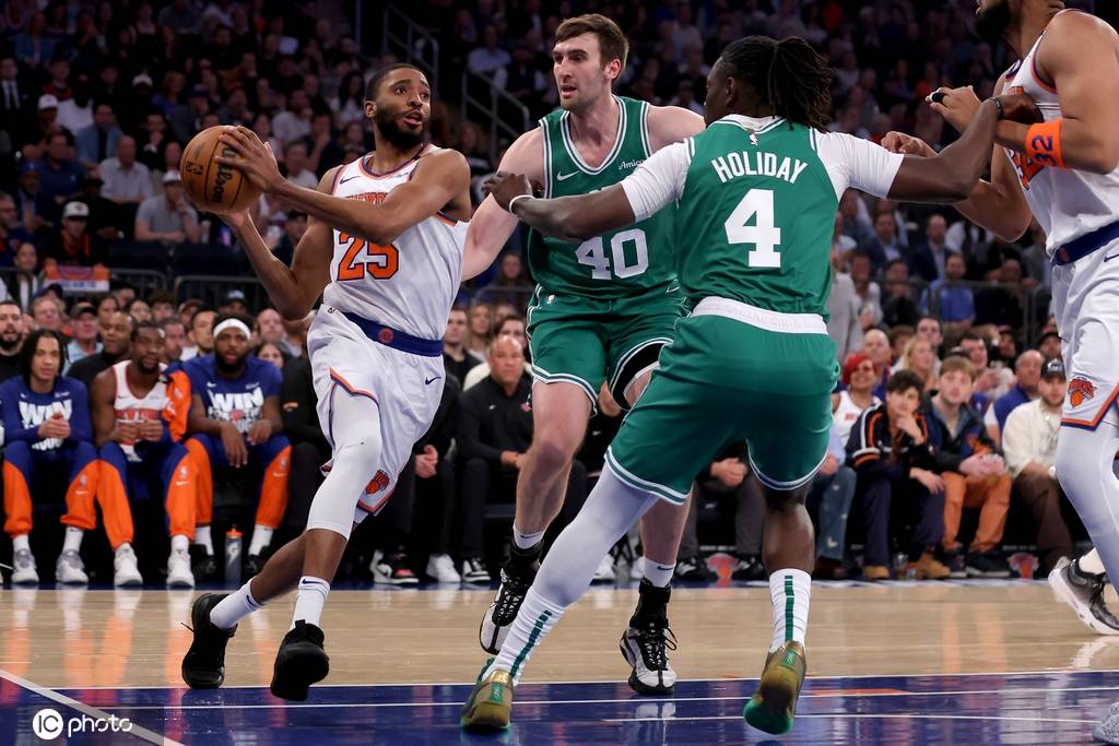 首节上来,唐斯和布里奇斯先后突破得手,尼克斯率先开张。但很快,杰伦-布朗三分和突破上篮连续命中,绿军迅速做出回应。此后,两队短暂开启拉锯战,布朗一人扛起绿军进攻,本节中后段,他的撤步三分再中个人已经拿到11分。波尔津吉斯顶弧超远三分也进,随后又在协防中封盖唐斯,这一攻一防也相当惊艳。但这也是绿军本场最后的闪光点了,此后,战局被尼克斯完全掌控,“大桥”三分命中,唐斯造犯规罚球2中2,两人的得分先后上双,布朗抛射再中,单节打完,绿军20-26暂时落后。