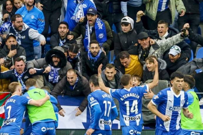 第 79 分钟,阿拉维斯队的霍尔丹站在点球点前。他深吸一口气,冷静地观察着对方门将的站位,随后大力射门,皮球直挂球门右下角入网,阿拉维斯 1-0 领先!这一进球瞬间点燃了主场的气氛,全场球迷陷入疯狂庆祝,他们的欢呼声仿佛要将球场掀翻。