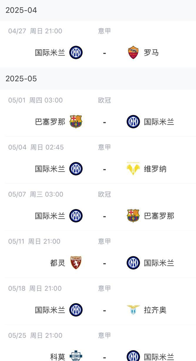 目前国米联赛与那不勒斯同分,争冠形势正焦灼,欧冠则将与巴萨大战,一切都还是未知数。