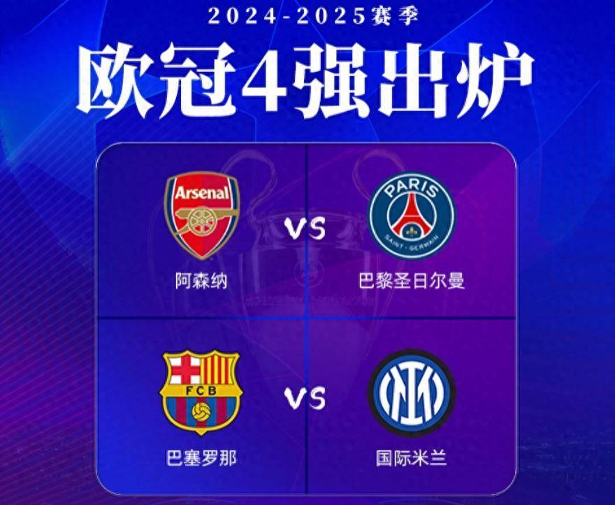 欧冠4强:巴萨、巴黎、阿森纳、国米